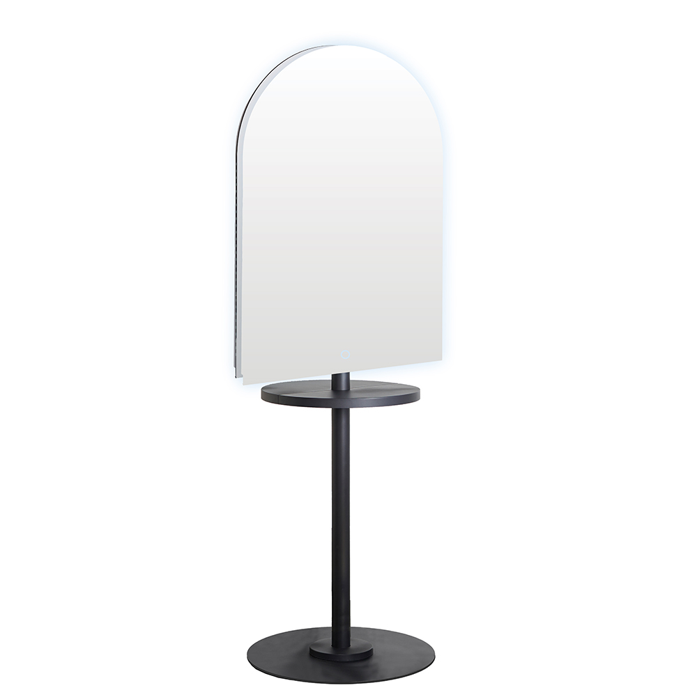 - Modern Aesthetic: The Arch LED II Salon Mirror is a stunning focal point against the black pole frame.