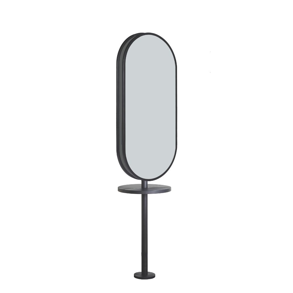 Elevate your salon’s interior and maximise more workspace with a Double Salon Mirror. Designed by Comfortel, the Onyx II Salon Mirror with Black Salon Pole Frame creates a double-sided, free-standing mirror, perfect for adding workstations when wall space is limited or centralising workstations without new walls. It can be bolted to the floor or have a base added to make it free-standing.