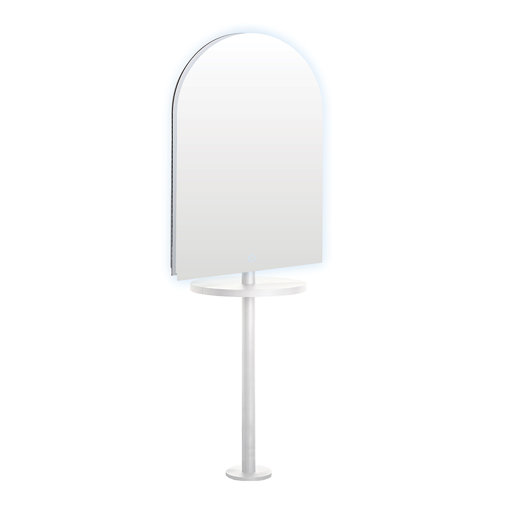 Elevate your salon’s interior and maximise more workspace with a Double Salon Mirror. Designed by Comfortel, the Arch LED II Salon Mirror with White Salon Pole Frame creates a double-sided, free-standing mirror, perfect for adding workstations when wall space is limited or centralising workstations without new walls. It can be bolted to the floor or have a base added to make it free-standing.