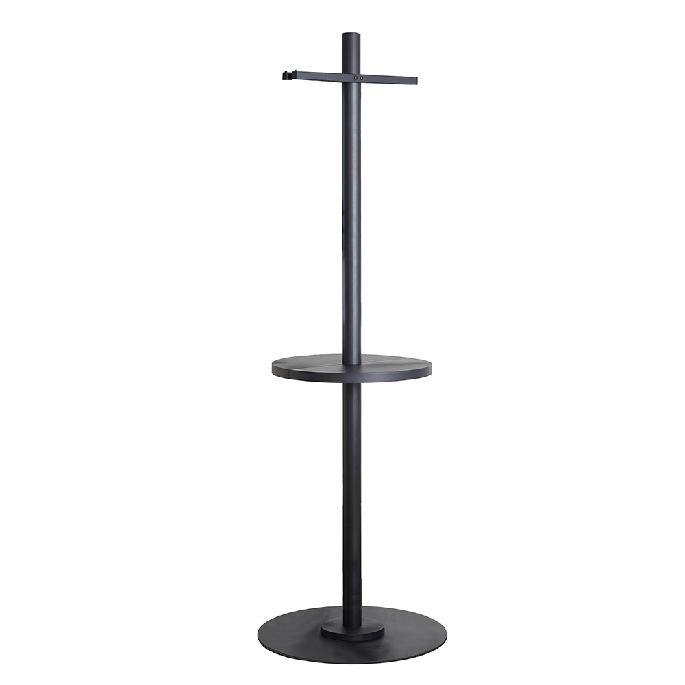The hollow pole allows you to bring power up from the floor and connect your LED mirror option or simply powering your tools through the central pole. Made out of solid powder coated metal in a matte look, bolt it to the floor or to the base plate, and create a contemporary styling station where you can mount selected Comfortel mirrors on each side.