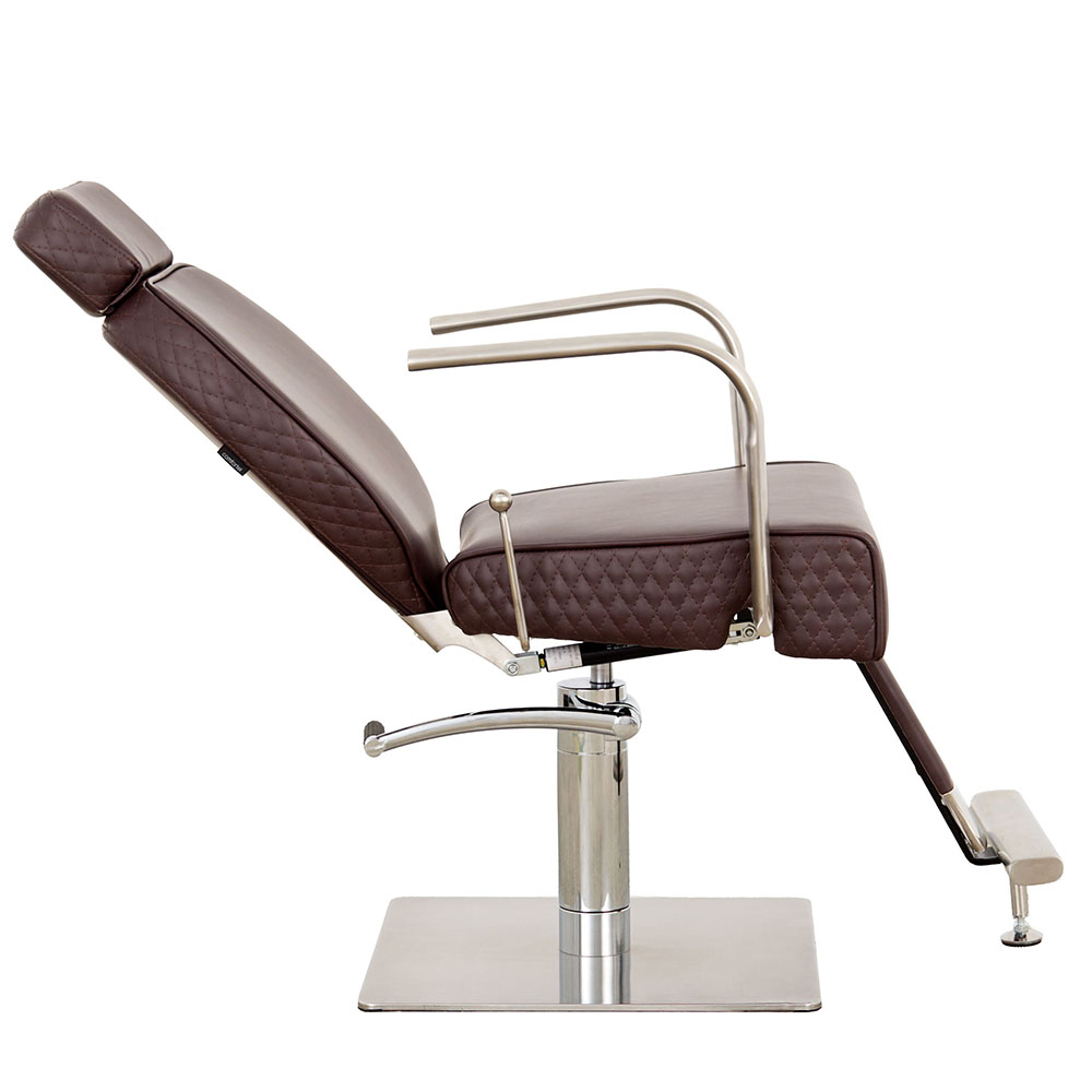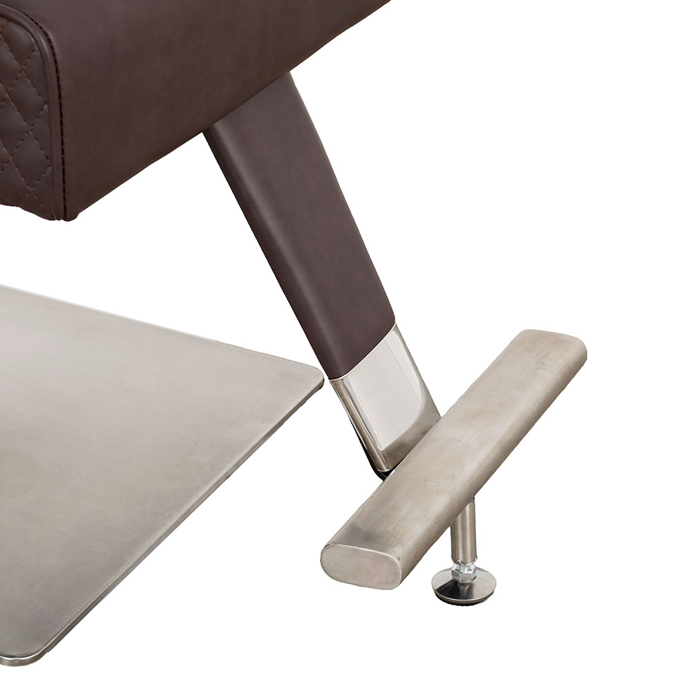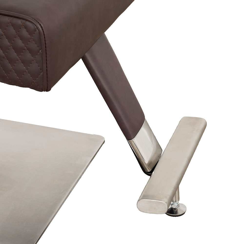Oh, Bella, Bella, because one beautiful is never enough. Bella is a reclining salon chair dressed in Comfortel’s Merlot upholstery, a mottled mix of chocolate brown and burgundy tones that feel rich and timeless. Diamond‑quilted sides, brushed stainless steel details and plush curves create an experience that feels luxurious from every angle. Made to turn heads and transform everyday appointments into something beautiful.