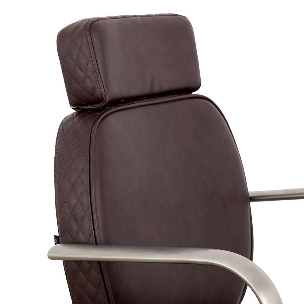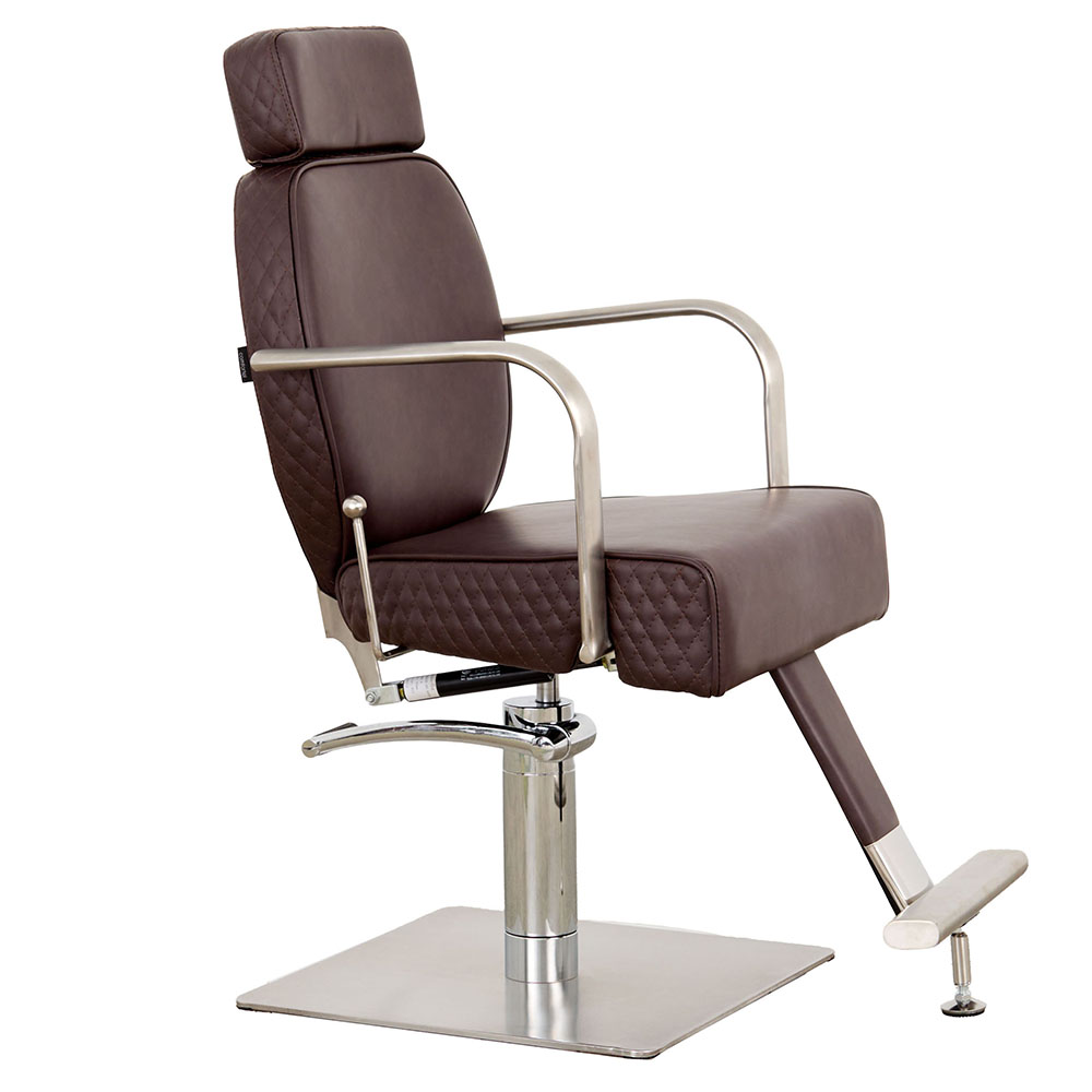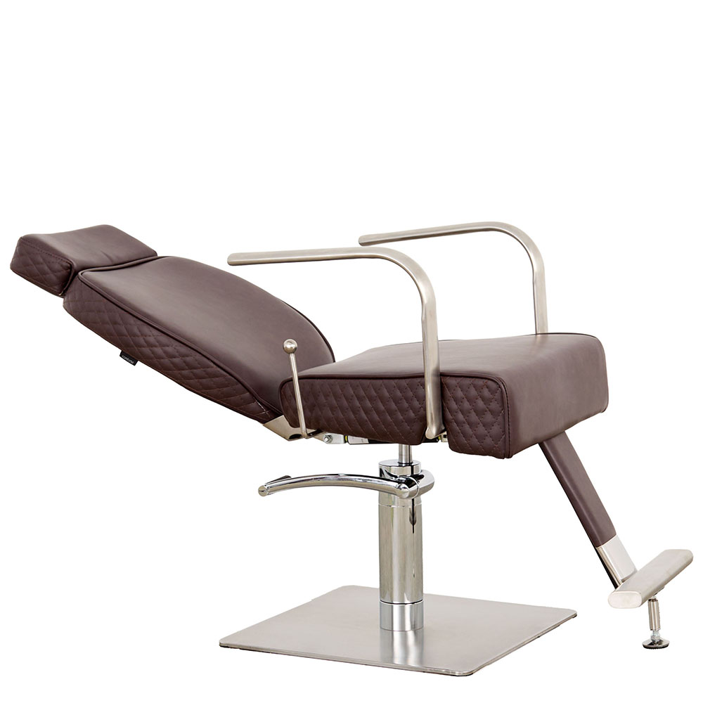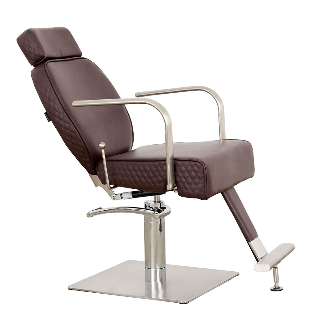Oh, Bella, Bella, because one beautiful is never enough. Bella is a reclining salon chair dressed in Comfortel’s Merlot upholstery, a mottled mix of chocolate brown and burgundy tones that feel rich and timeless. Diamond‑quilted sides, brushed stainless steel details and plush curves create an experience that feels luxurious from every angle. Made to turn heads and transform everyday appointments into something beautiful.
