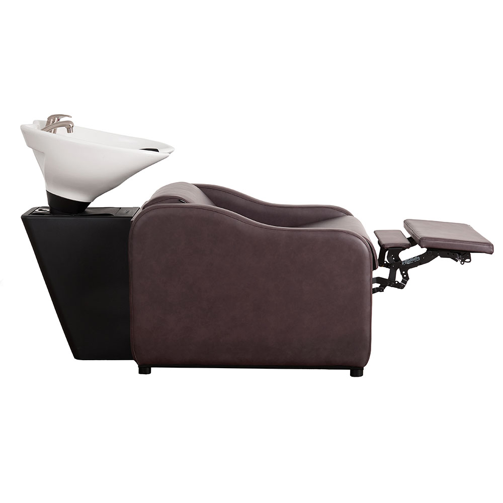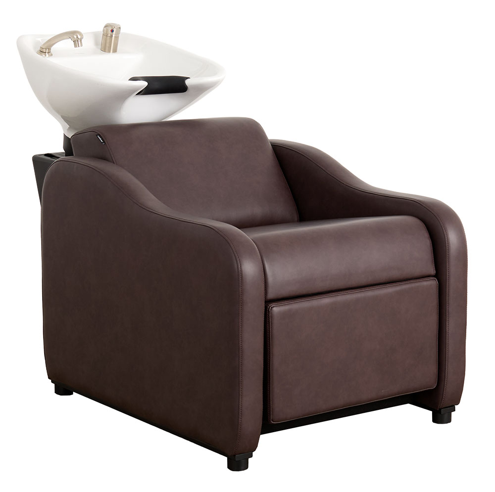 Soft, sculptural and effortlessly elegant, Camilla is made for the salon that leads with design. Wrapped in our Merlot upholstery, a mottled mix of chocolate brown and burgundy tones, her curved silhouette brings a warm, comforting feel to any shampoo area.
