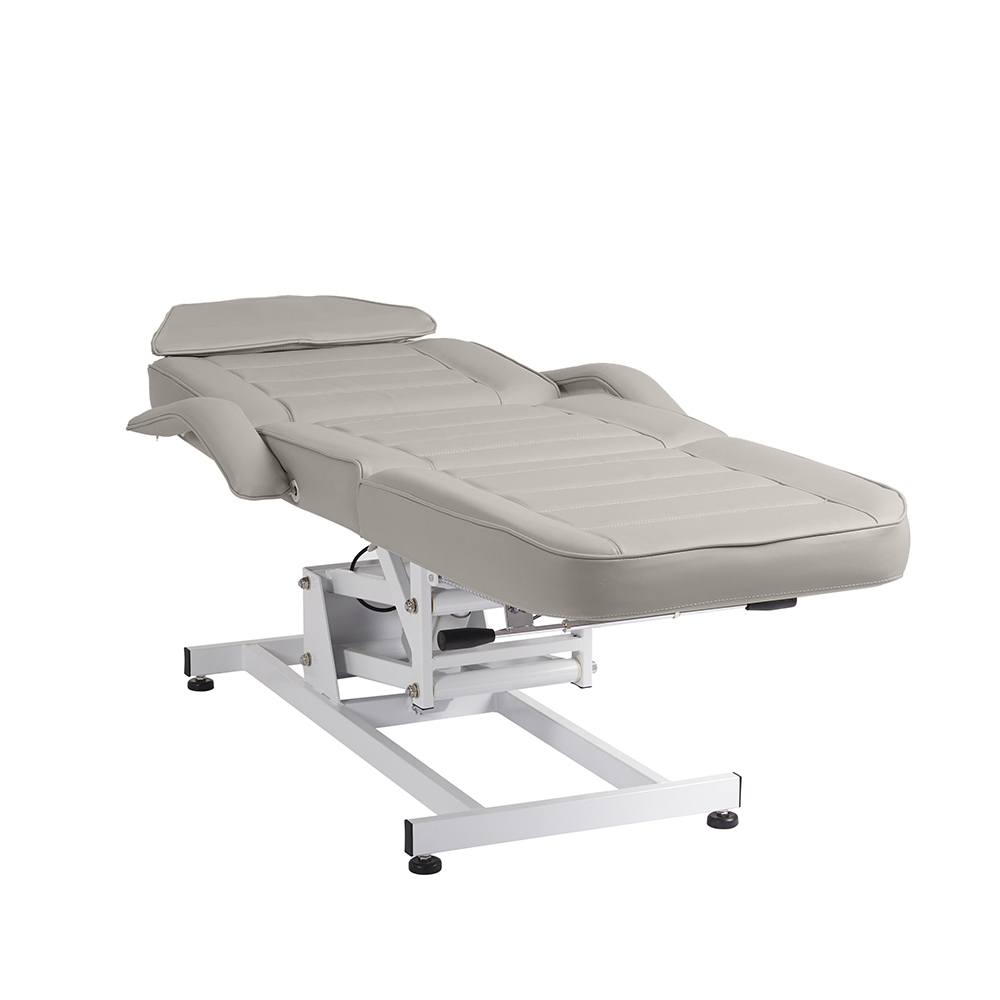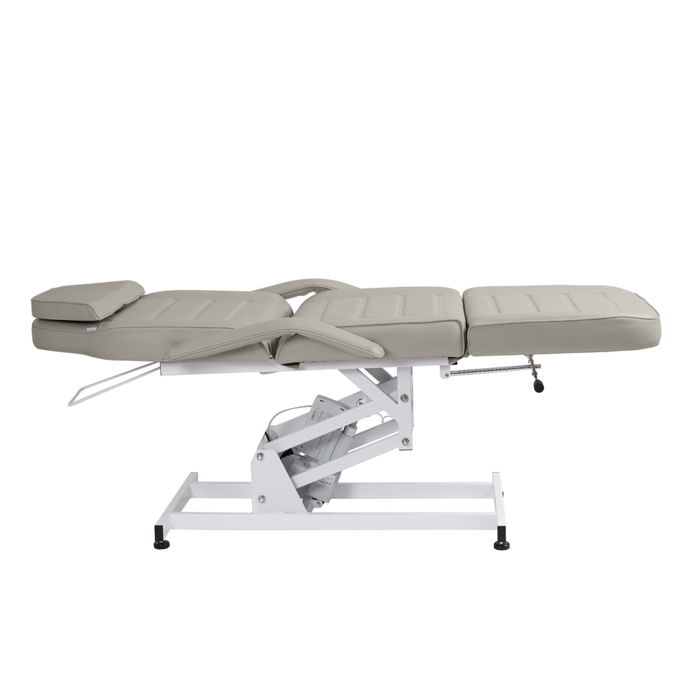 The Aquarius Beauty Bed in Comfortel’s Signature Stone Upholstery features an electric height adjustment conveniently operated by a foot control.